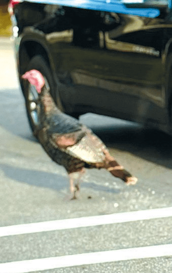 Jay Manning, works at the Norman Bird Sanctuary, spoke kindly about the turkey and he stated that, “While waiting to take a left turn on Green End from Aquidneck Avenue, I watched him wait patiently for the traffic to clear before using the crosswalk to cross the road.”